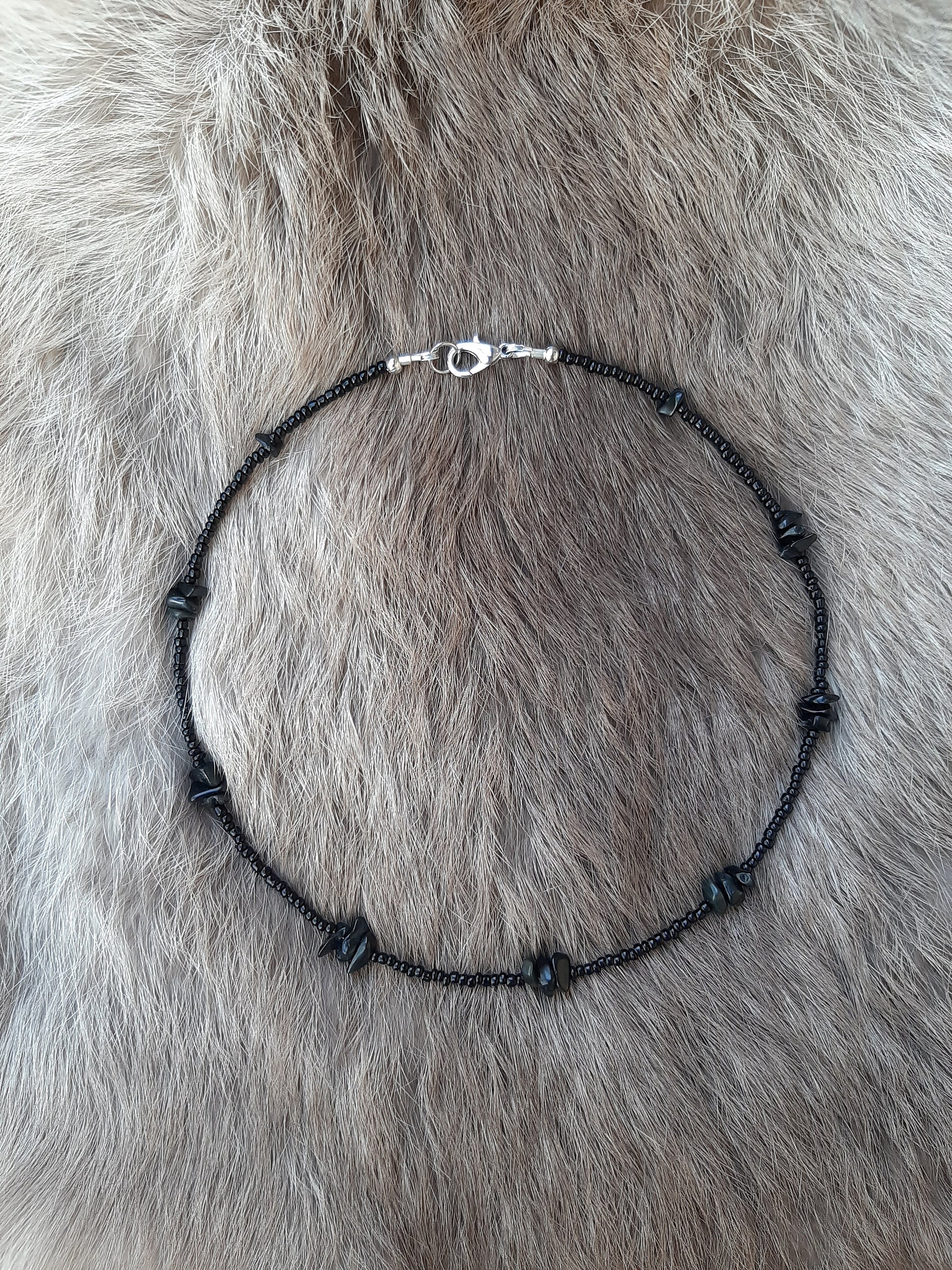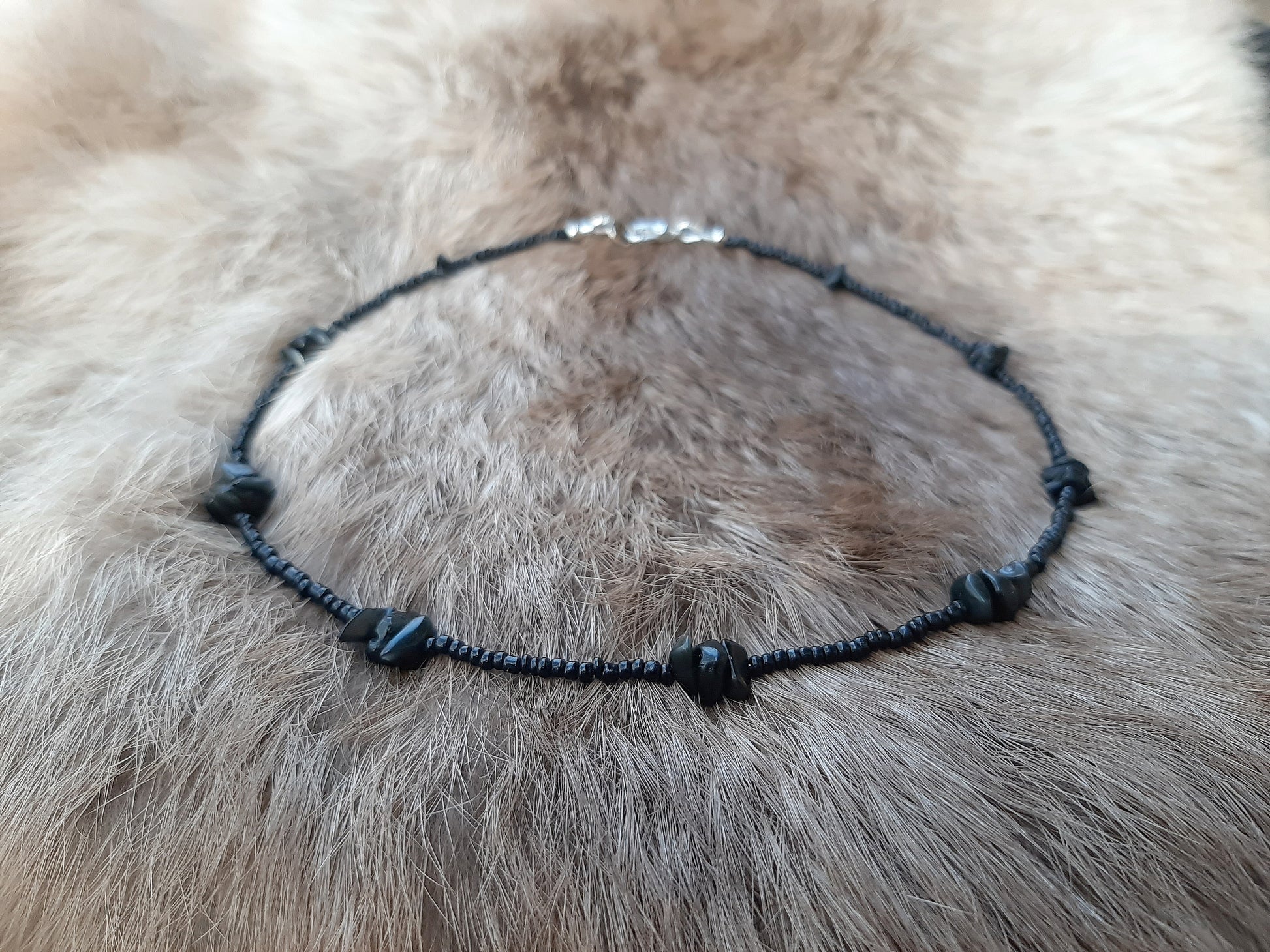 Made with Obsidian, Black Glass Seed Beads & Stainless Steel Hardware