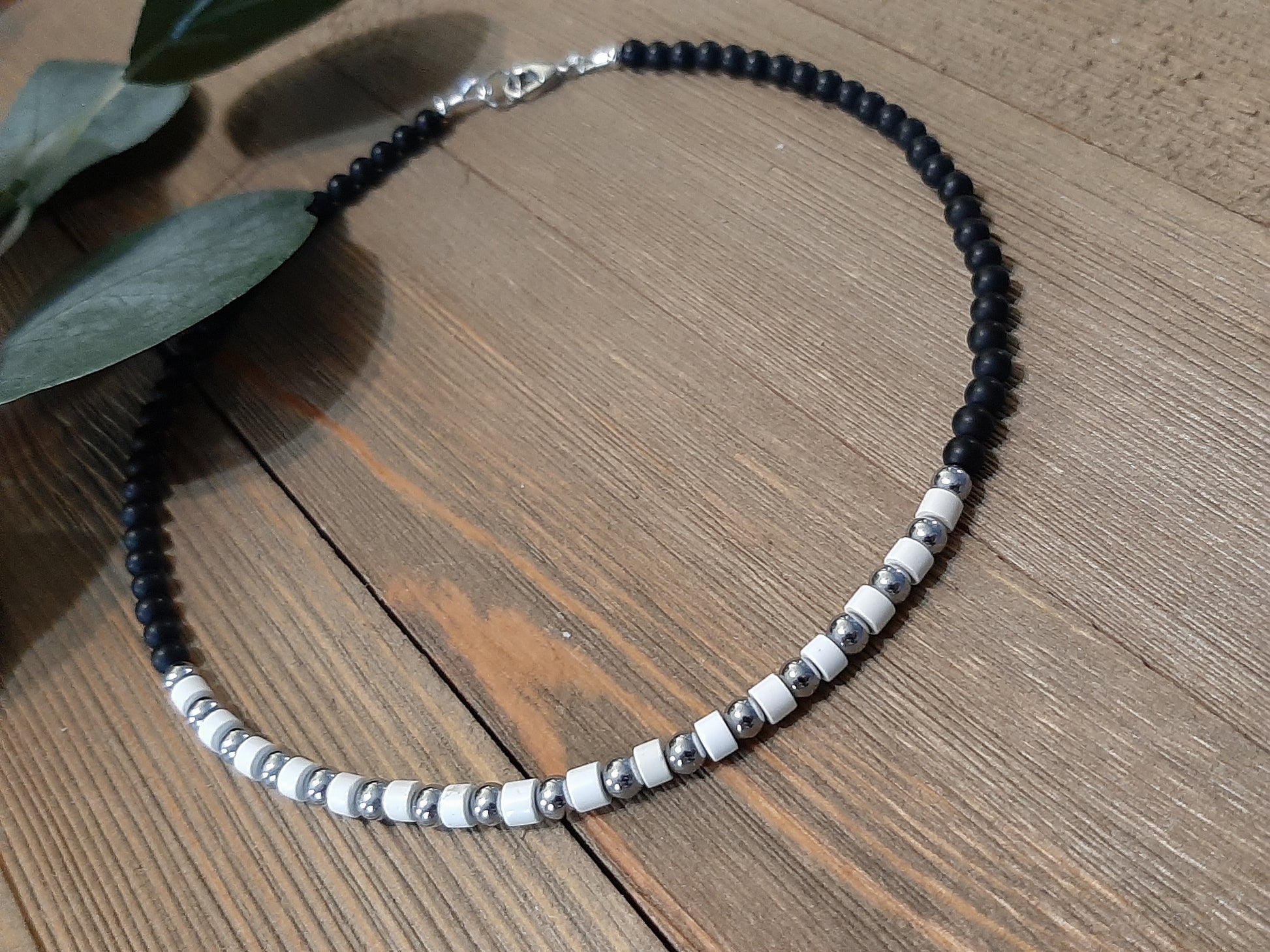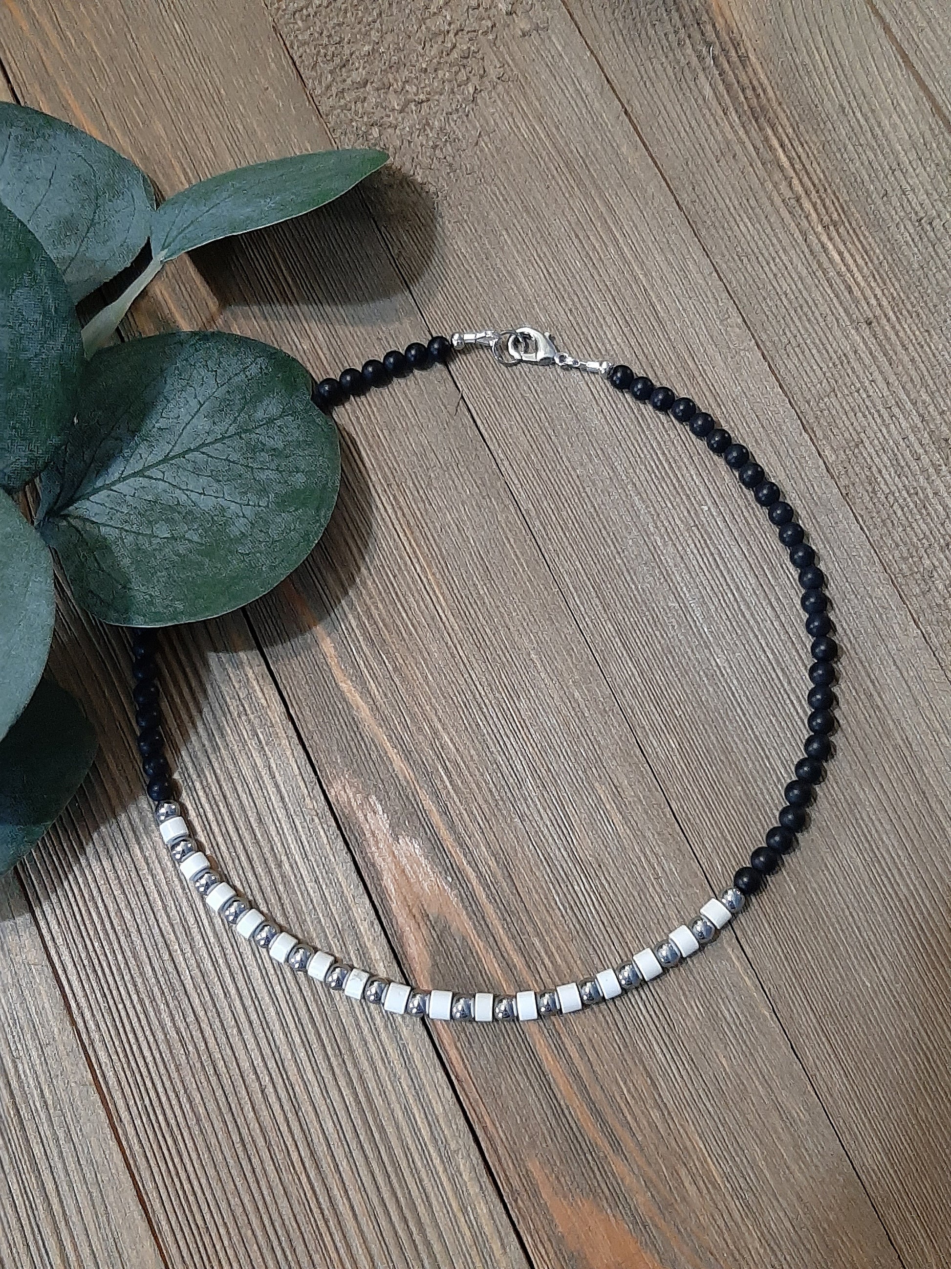 Black Onyx, White Dakota Stone, Silver Hematite & Stainless Steel Hardware