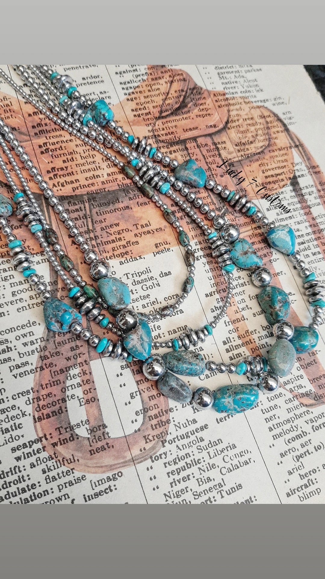 Genuine Turquoise, Silver Hematite & Stainless Steel Hardware