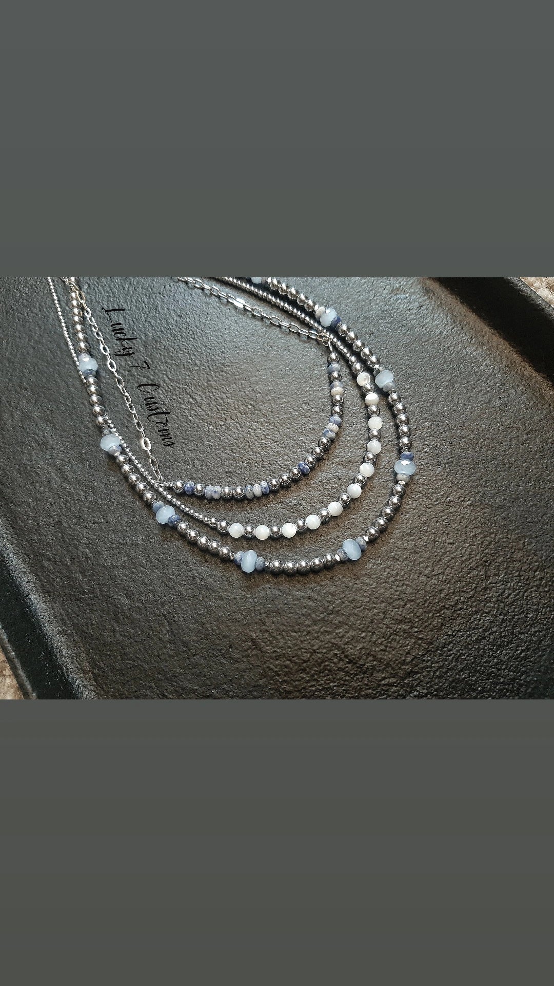 Blue Cats Eye, Sodalite, MOP, Silver Hematite & Stainless Steel Hardware