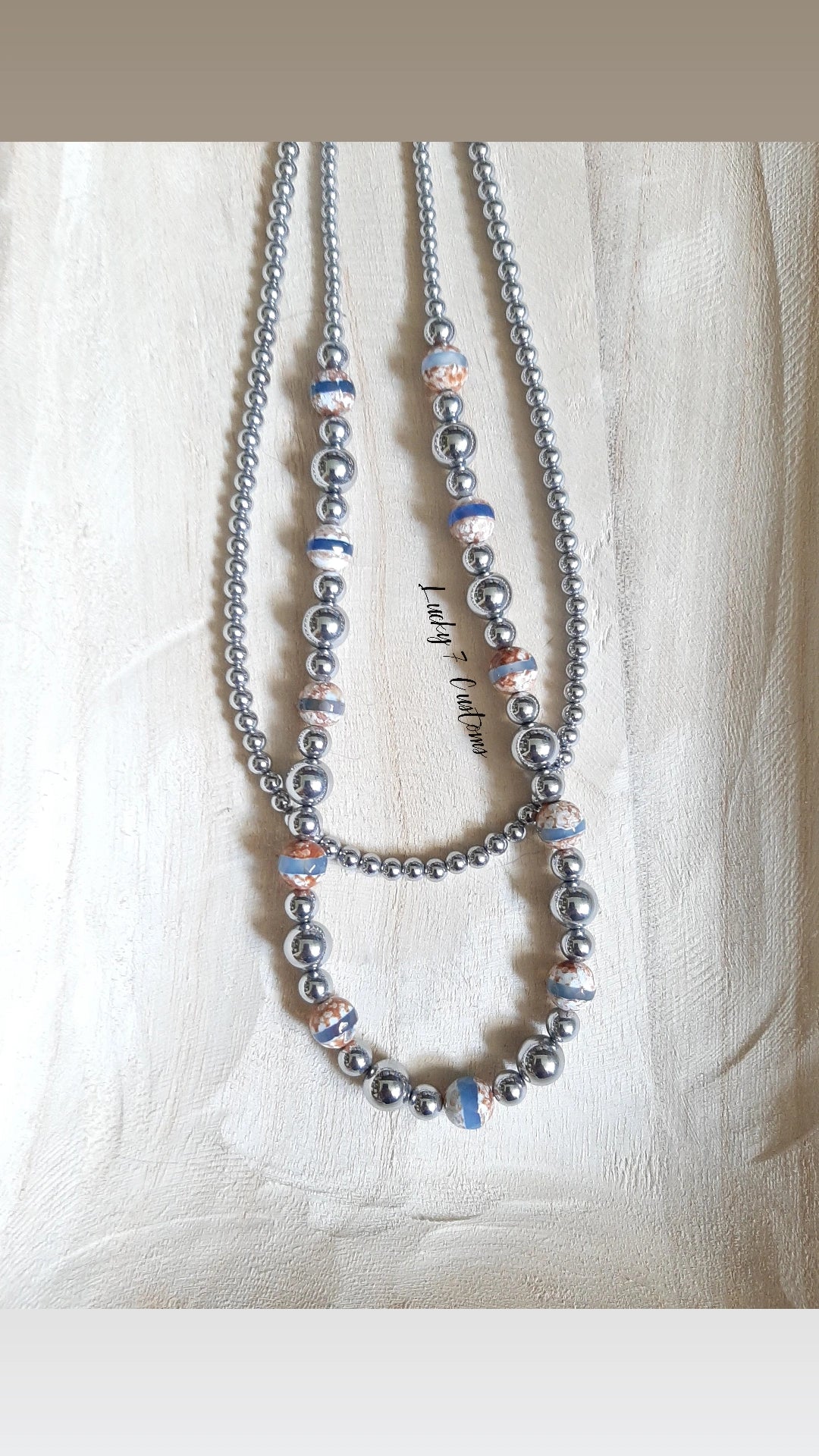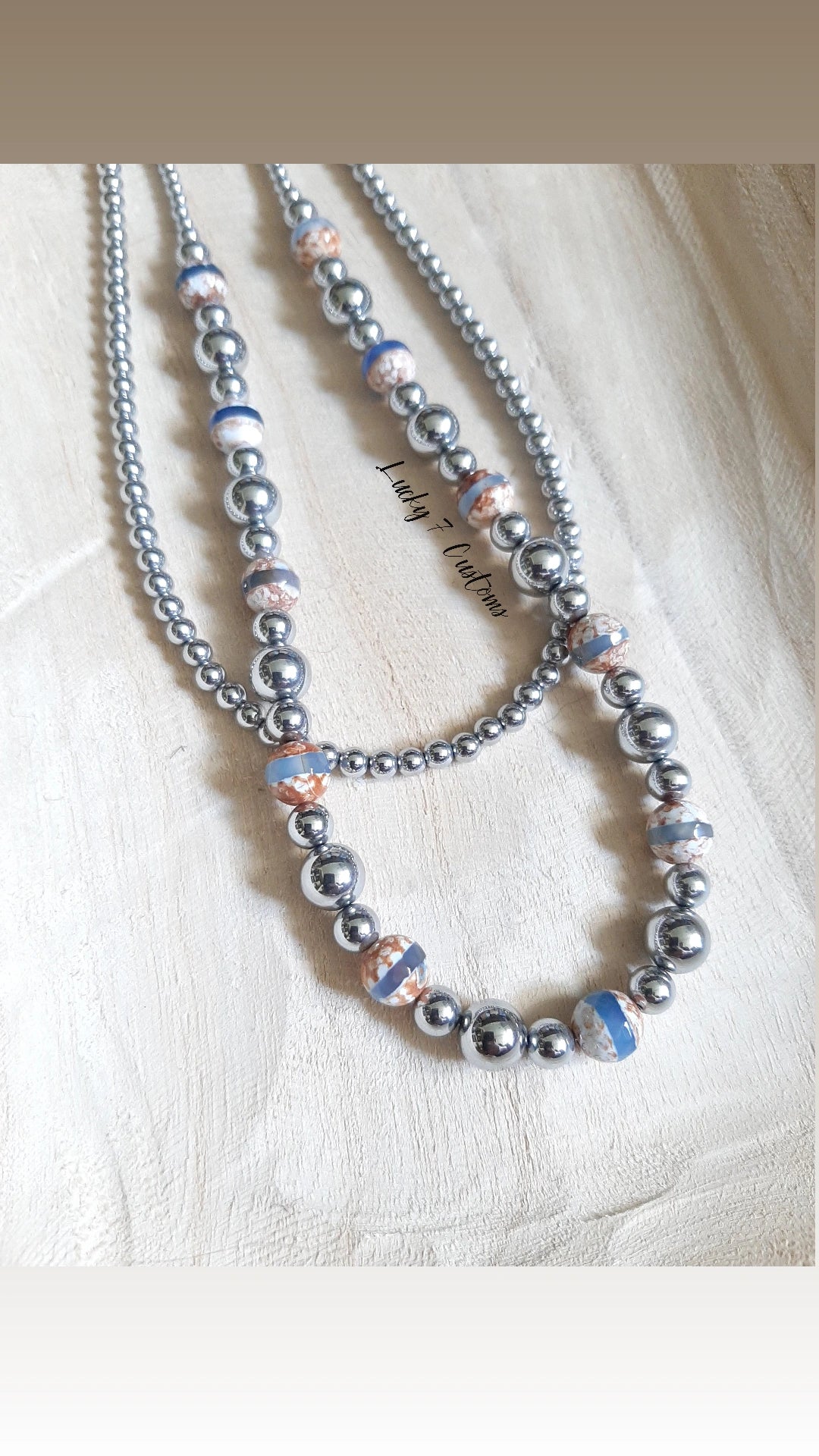 Tibet Agate, Silver Hematite & Stainless Steel Hardware