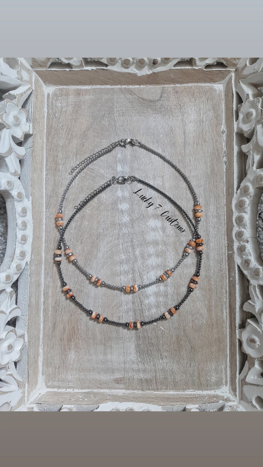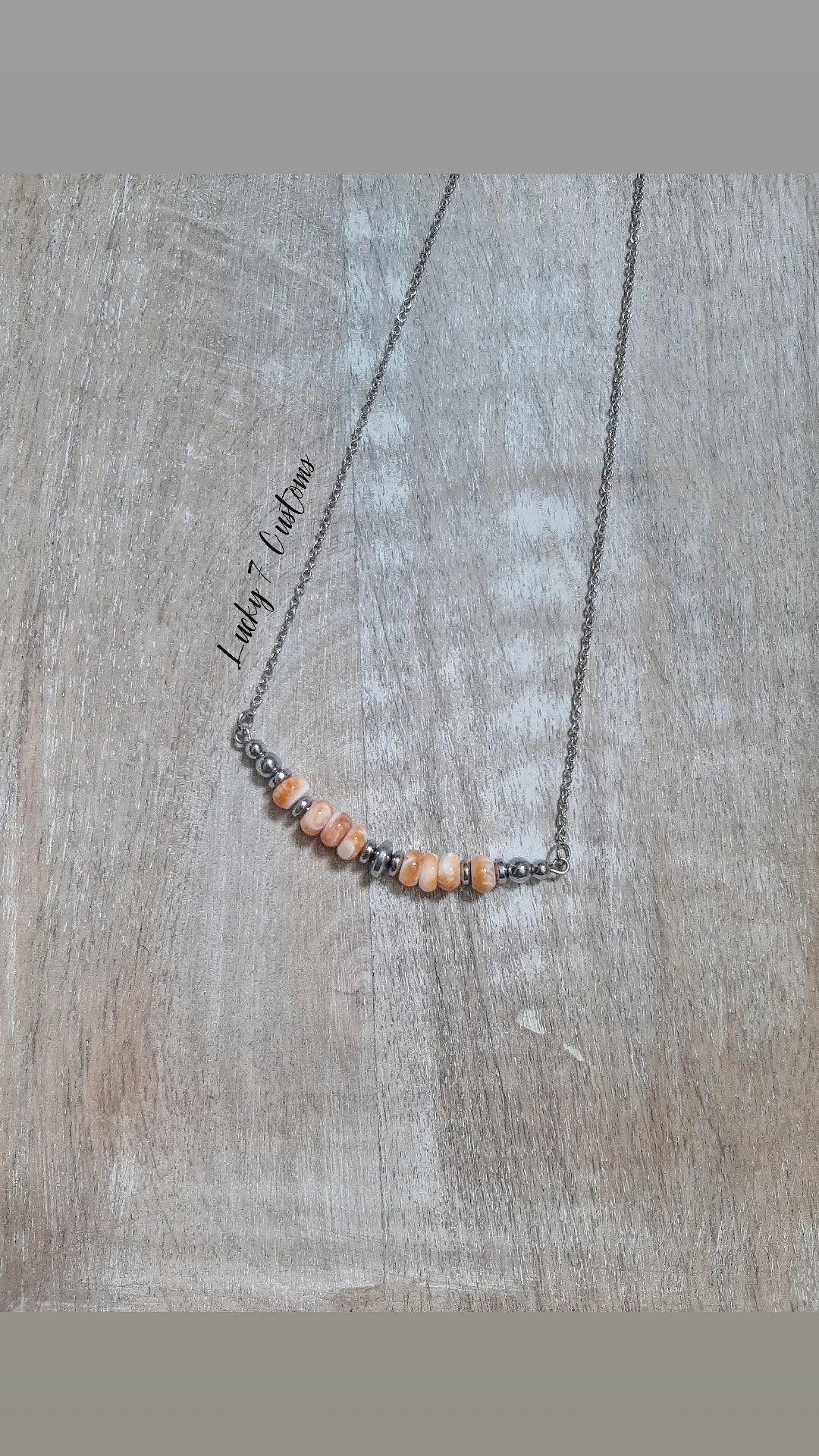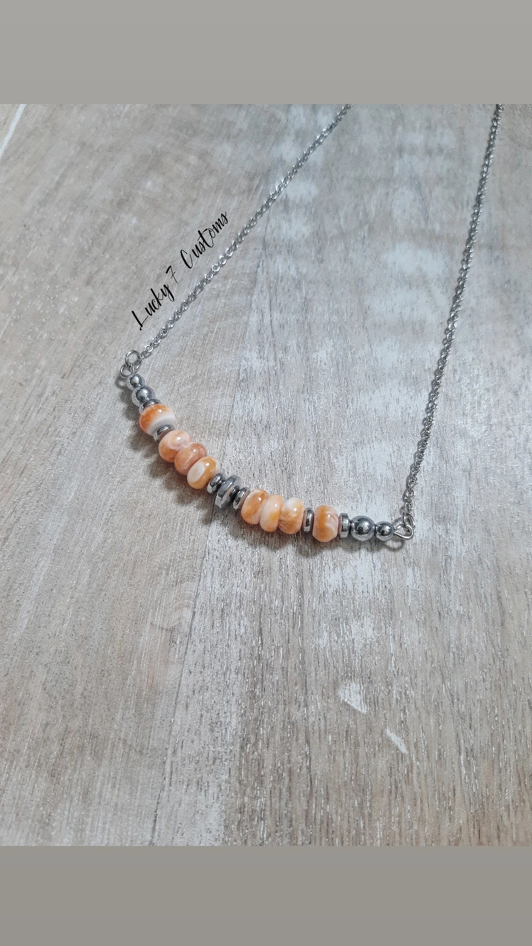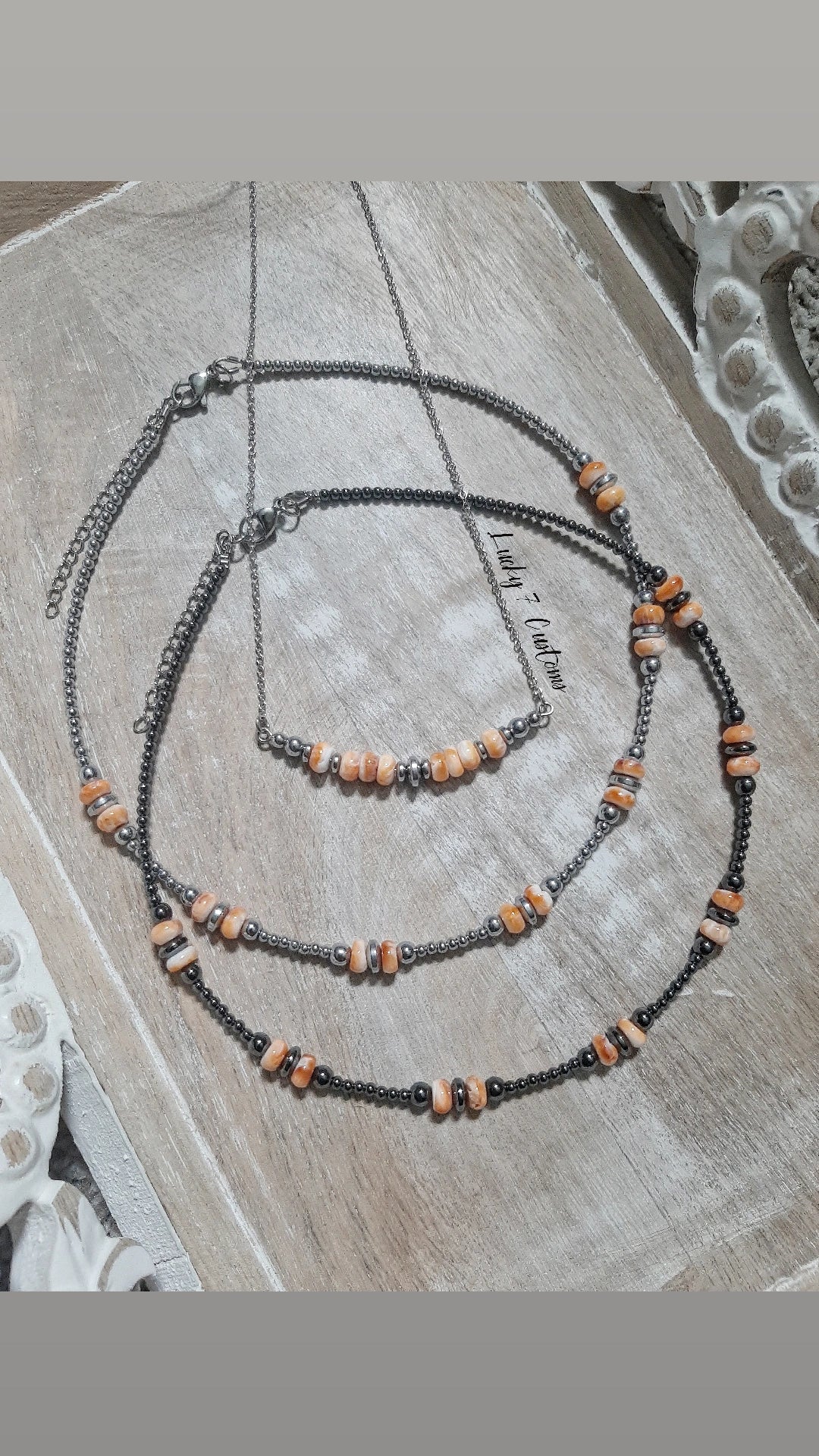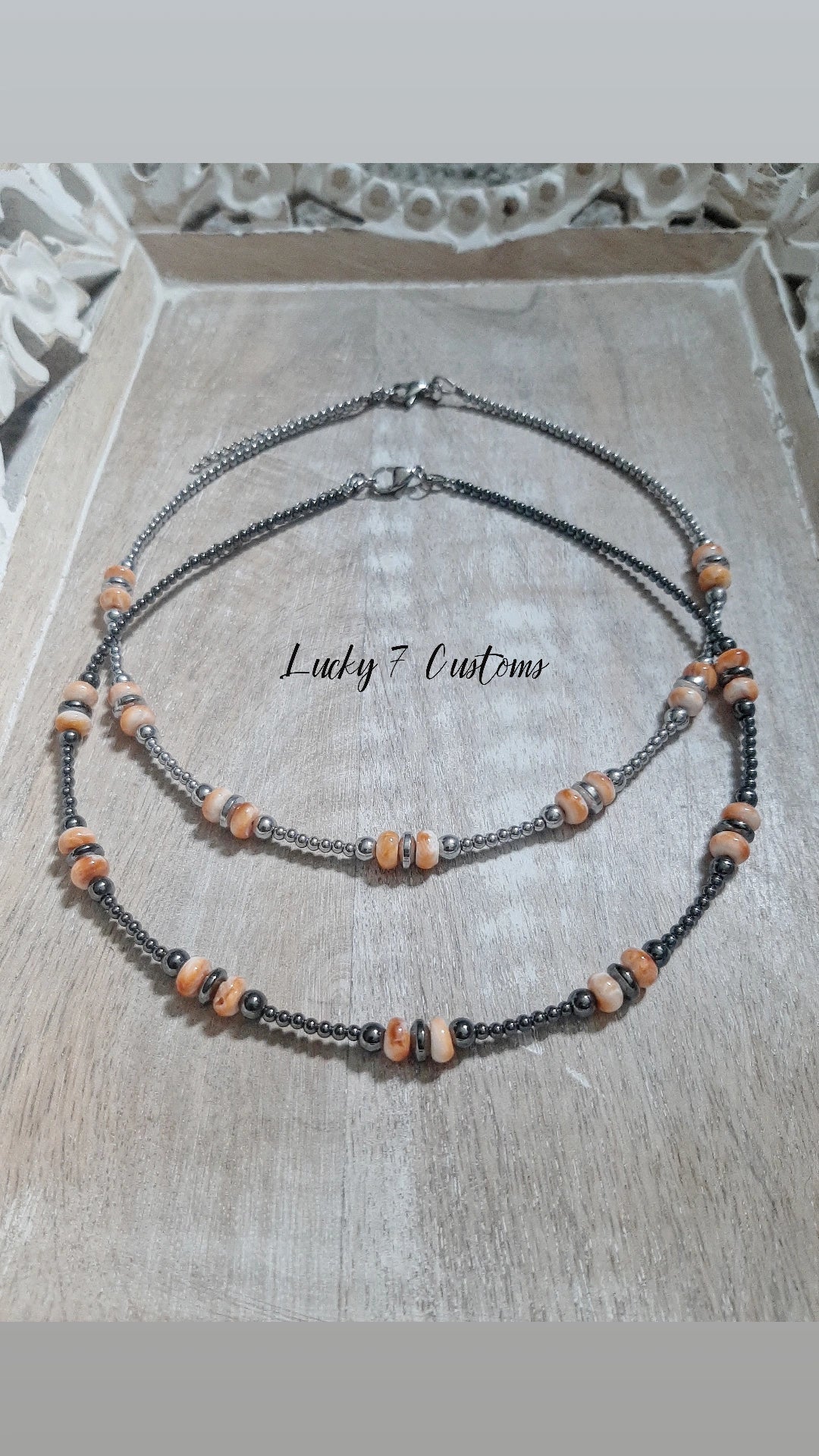 Orange Spiny Oyster, Black Hematite, Silver Hematite & Stainless Steel Hardware