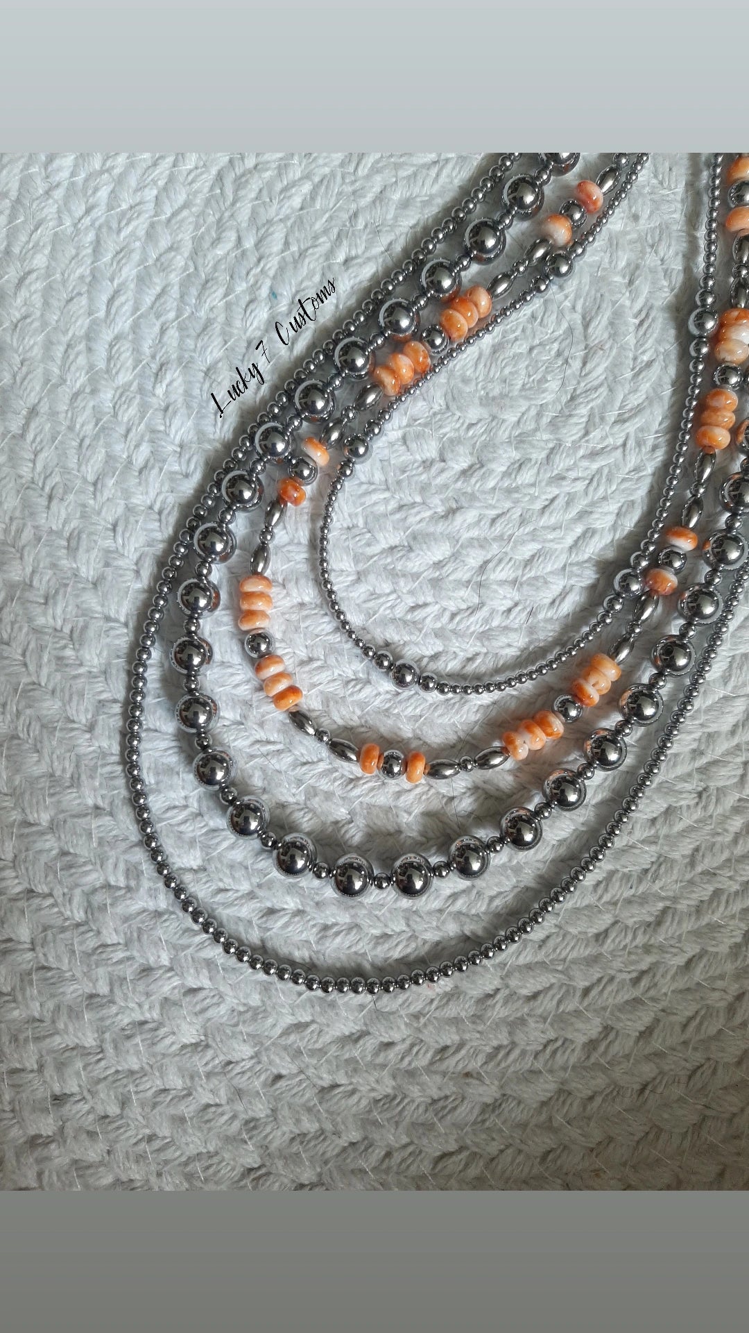 Orange Spiny Oyster, Silver Hematite & Stainless Steel Hardware