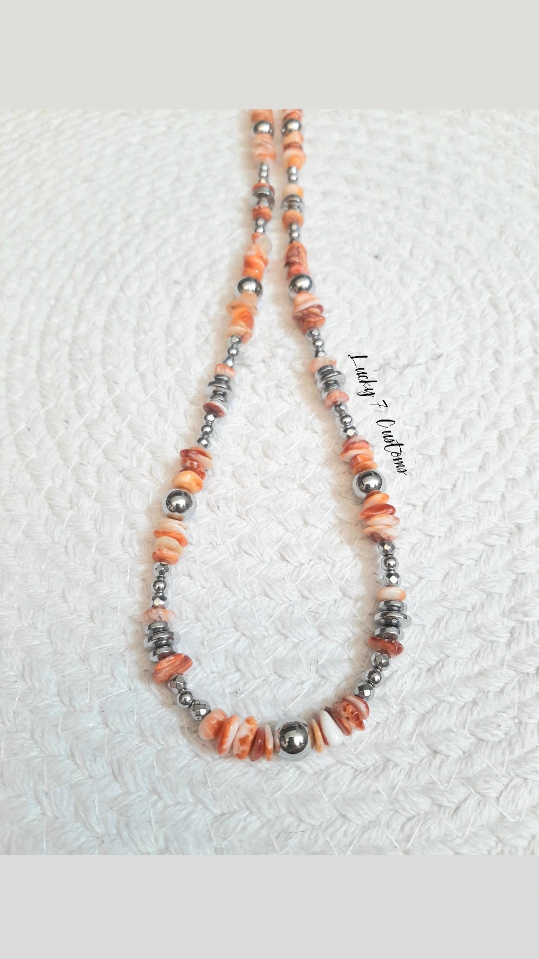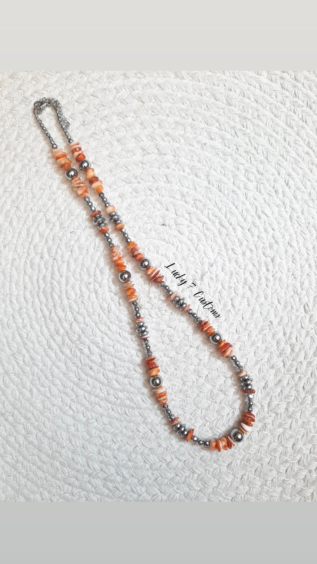 Orange Spiny Oyster, Silver Hematite & Stainless Steel