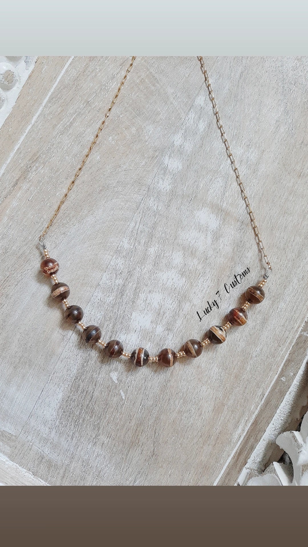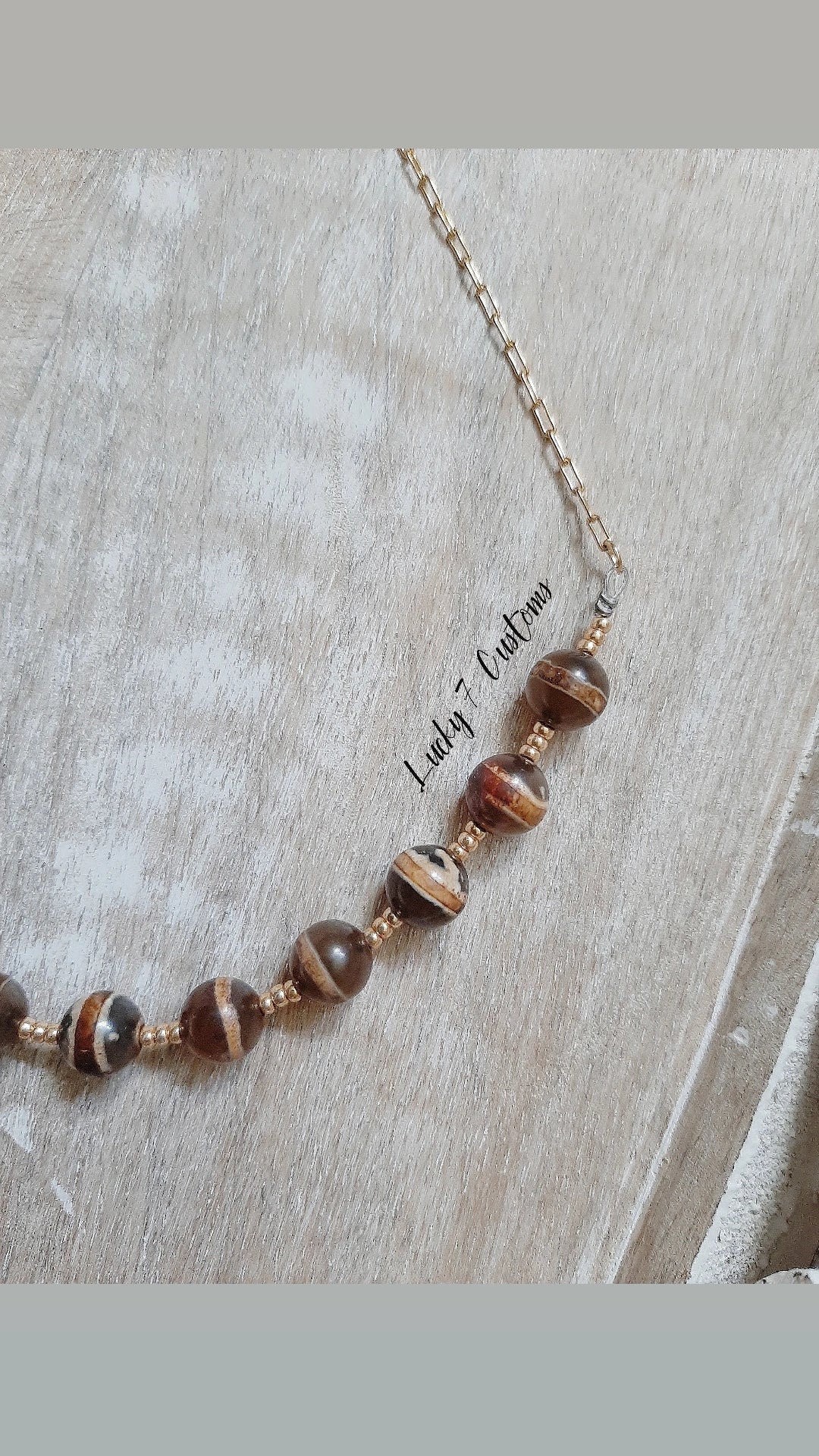 Tibatan Agate, Gold Glass Seed Beads & Gold Stainless Steel Chain & Hardware