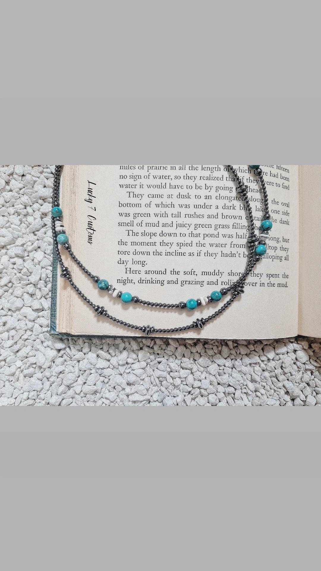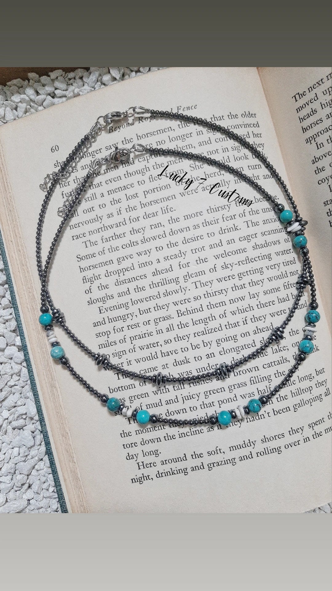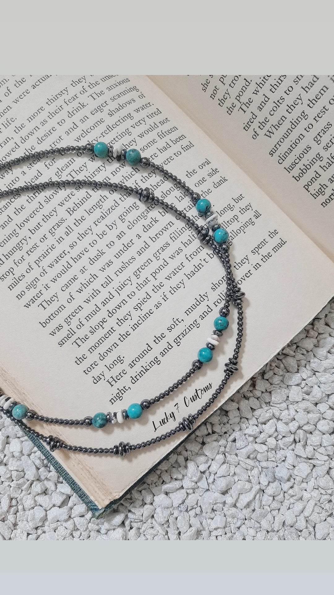 White Buffalo, Genuine Turquoise, Black Hematite & Stainless Steel