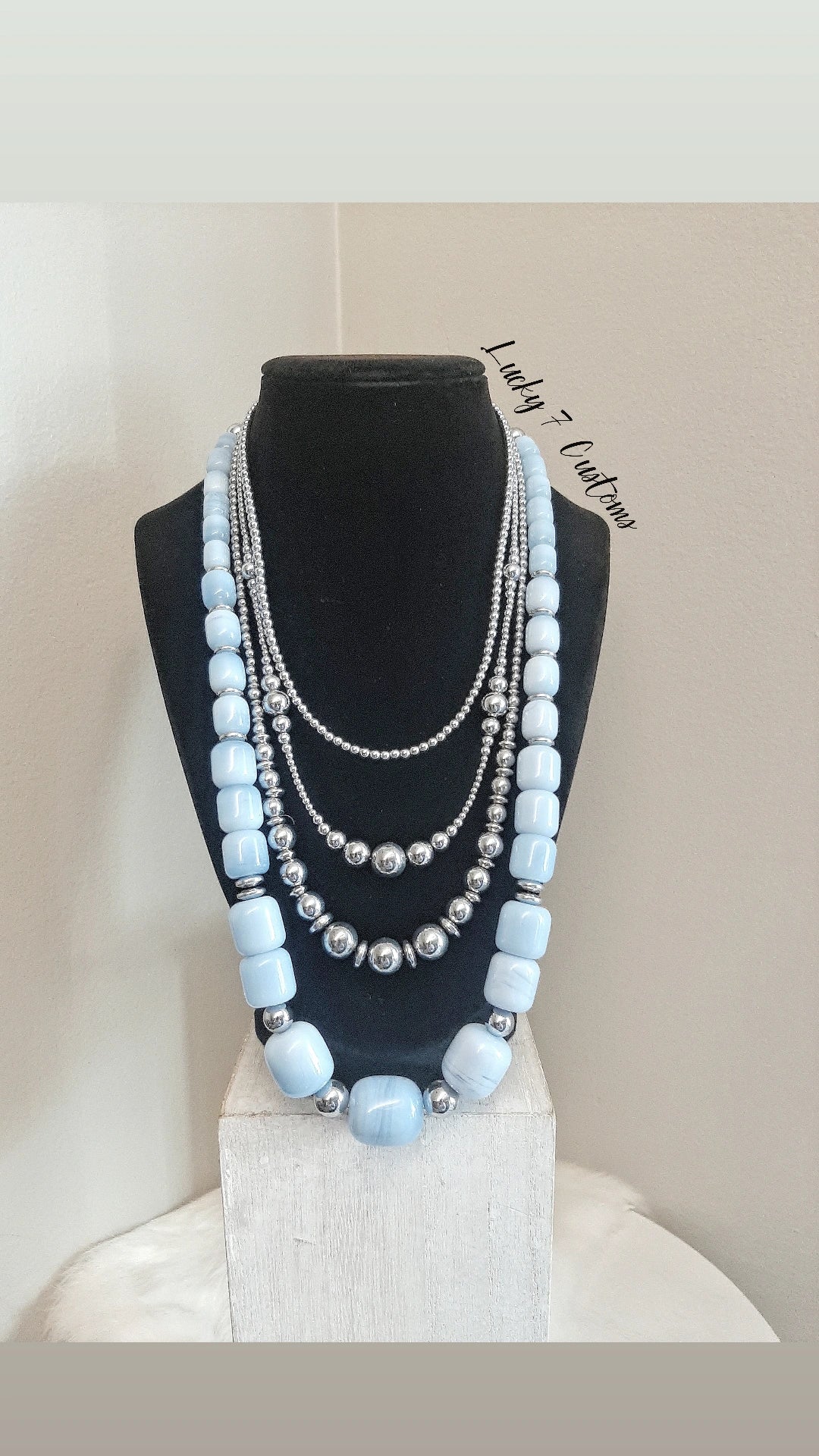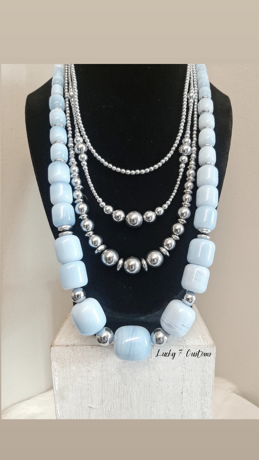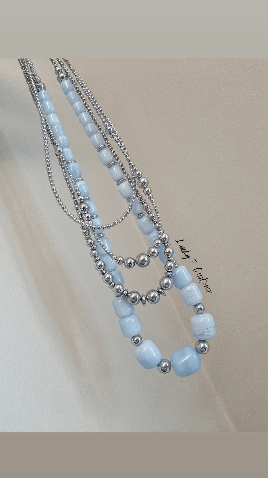 Blue Lace Agate, Silver Hematite & Stainless Steel Hardware