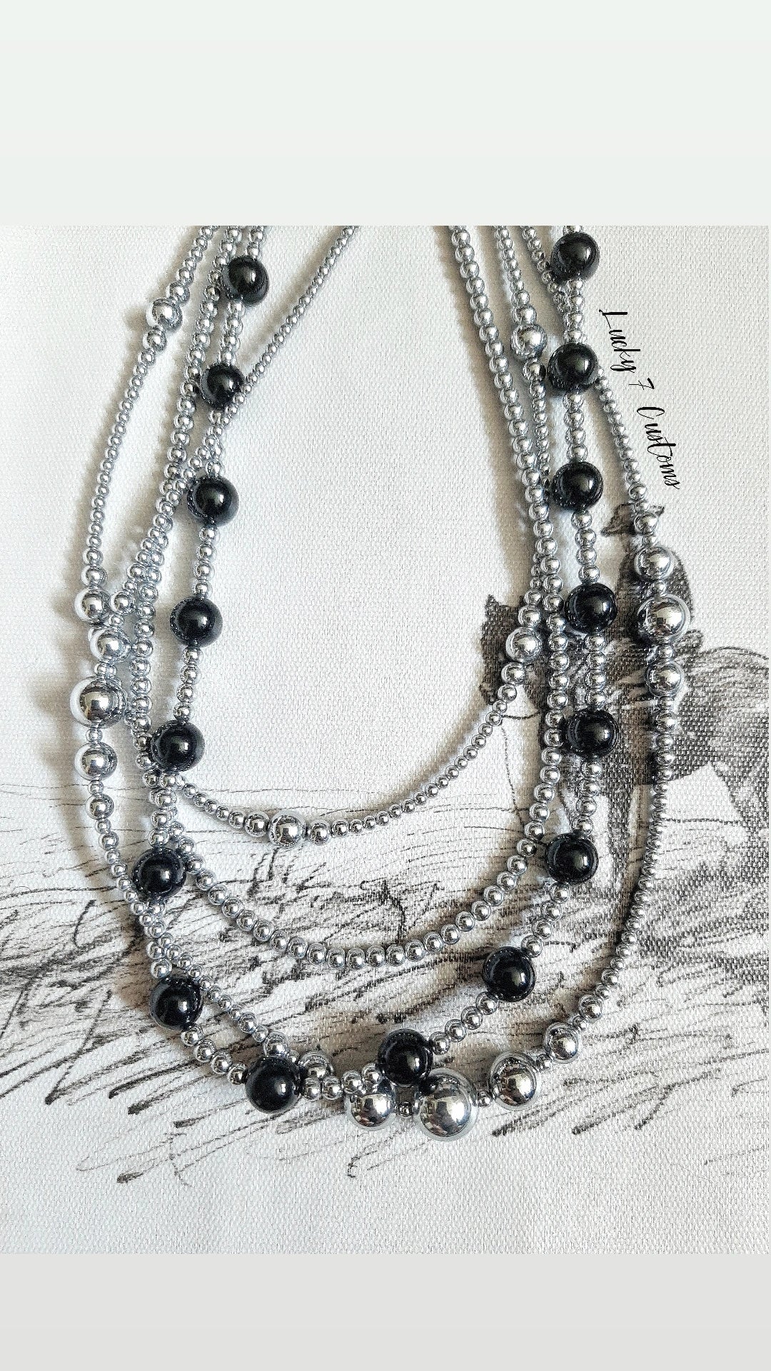 Black Onyx, Silver Hematite & Stainless Steel Hardware