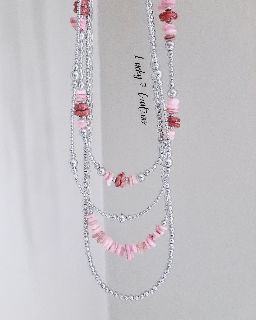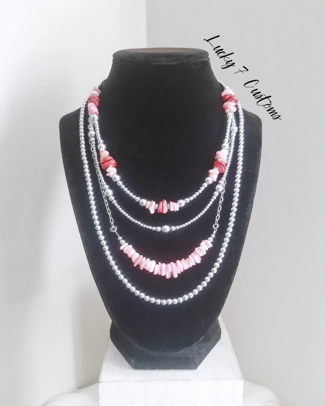 Pink Shell, Red Coral, Silver Hematite & Stainless Steel