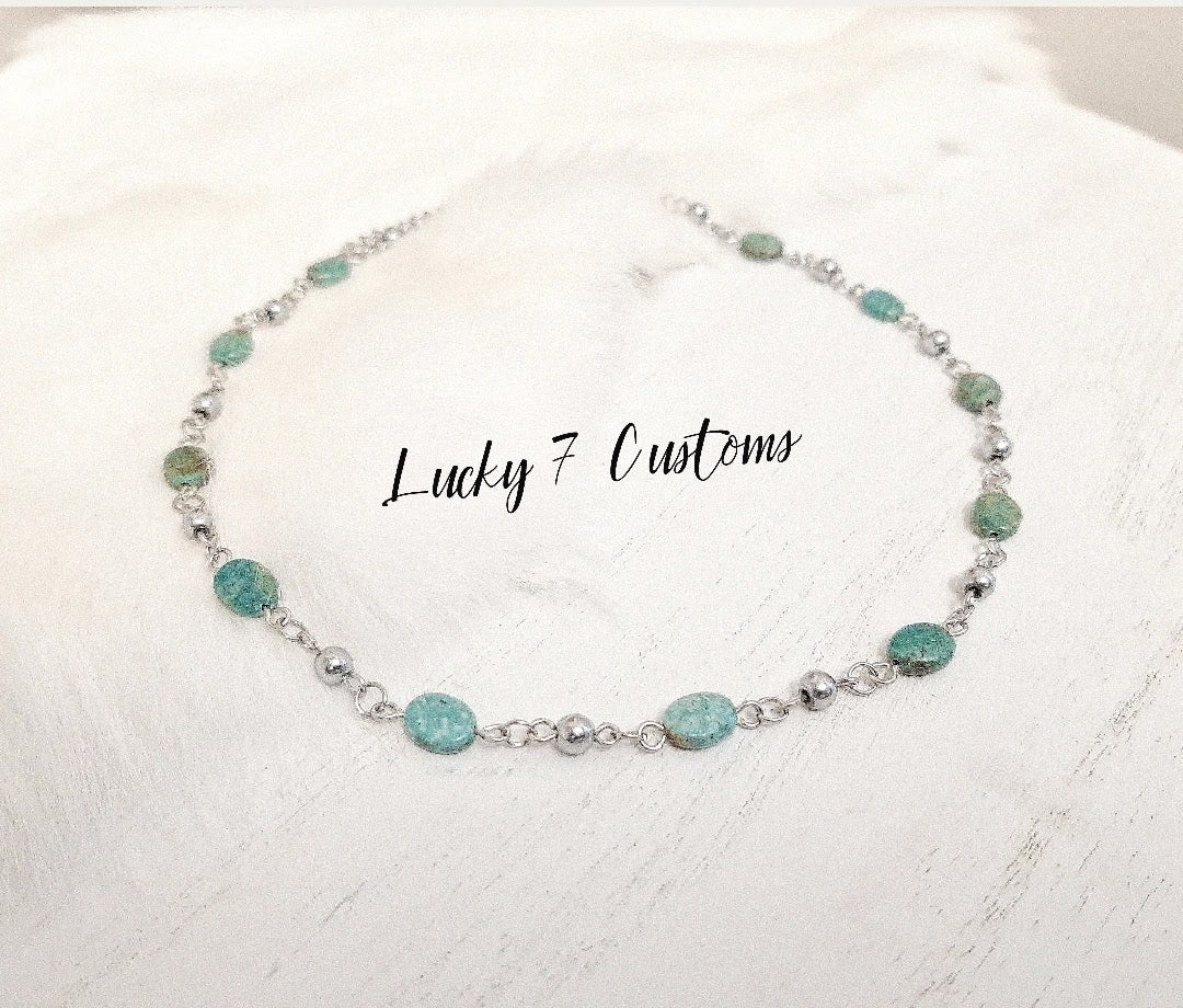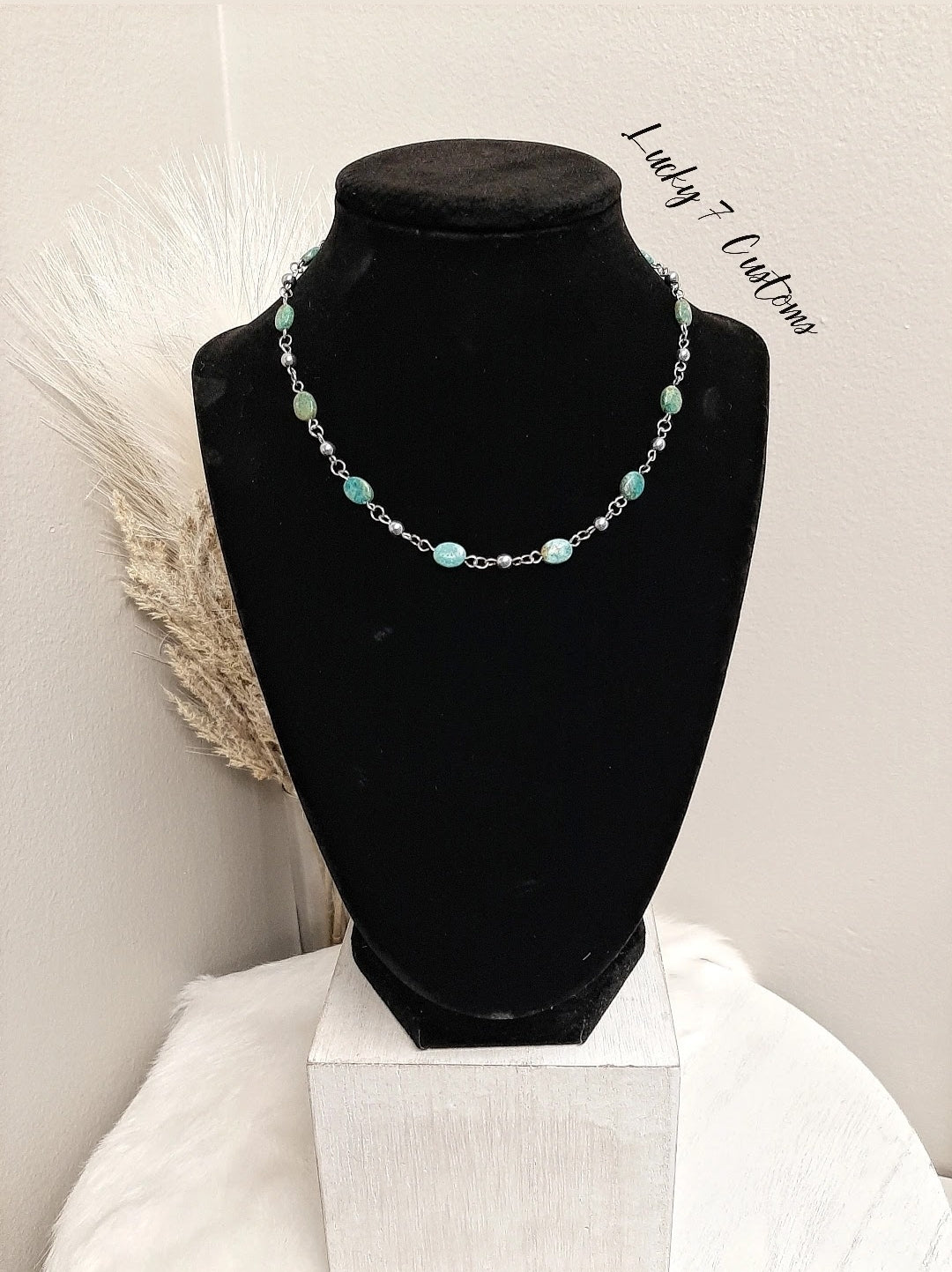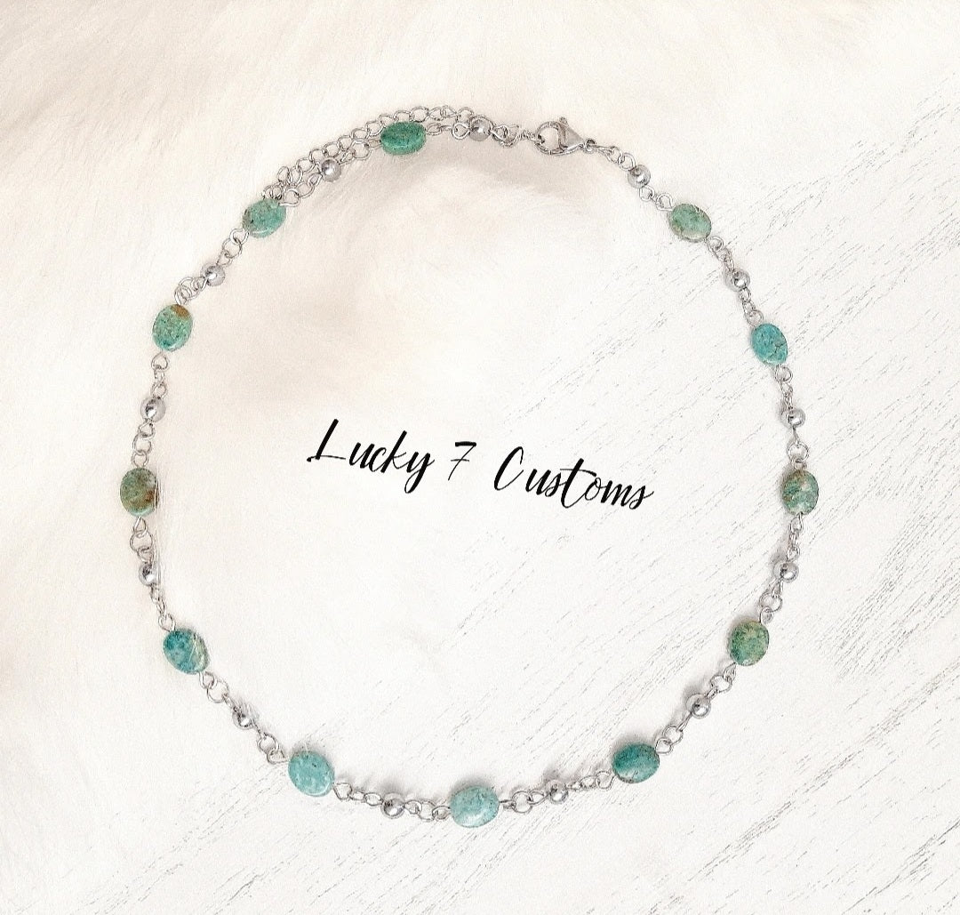 Genuine Turquoise, Silver Hematite & Stainless Steel Hardware