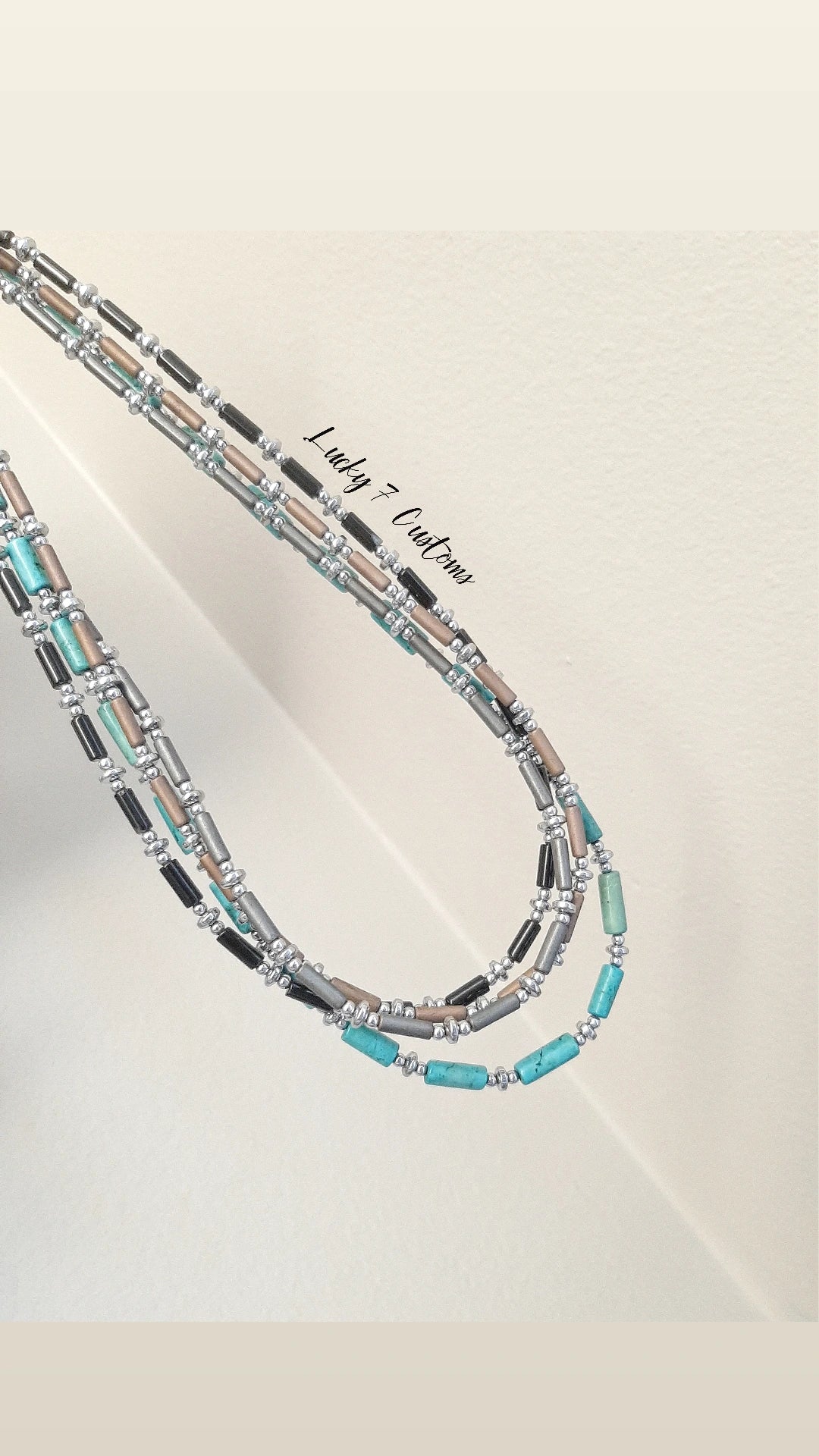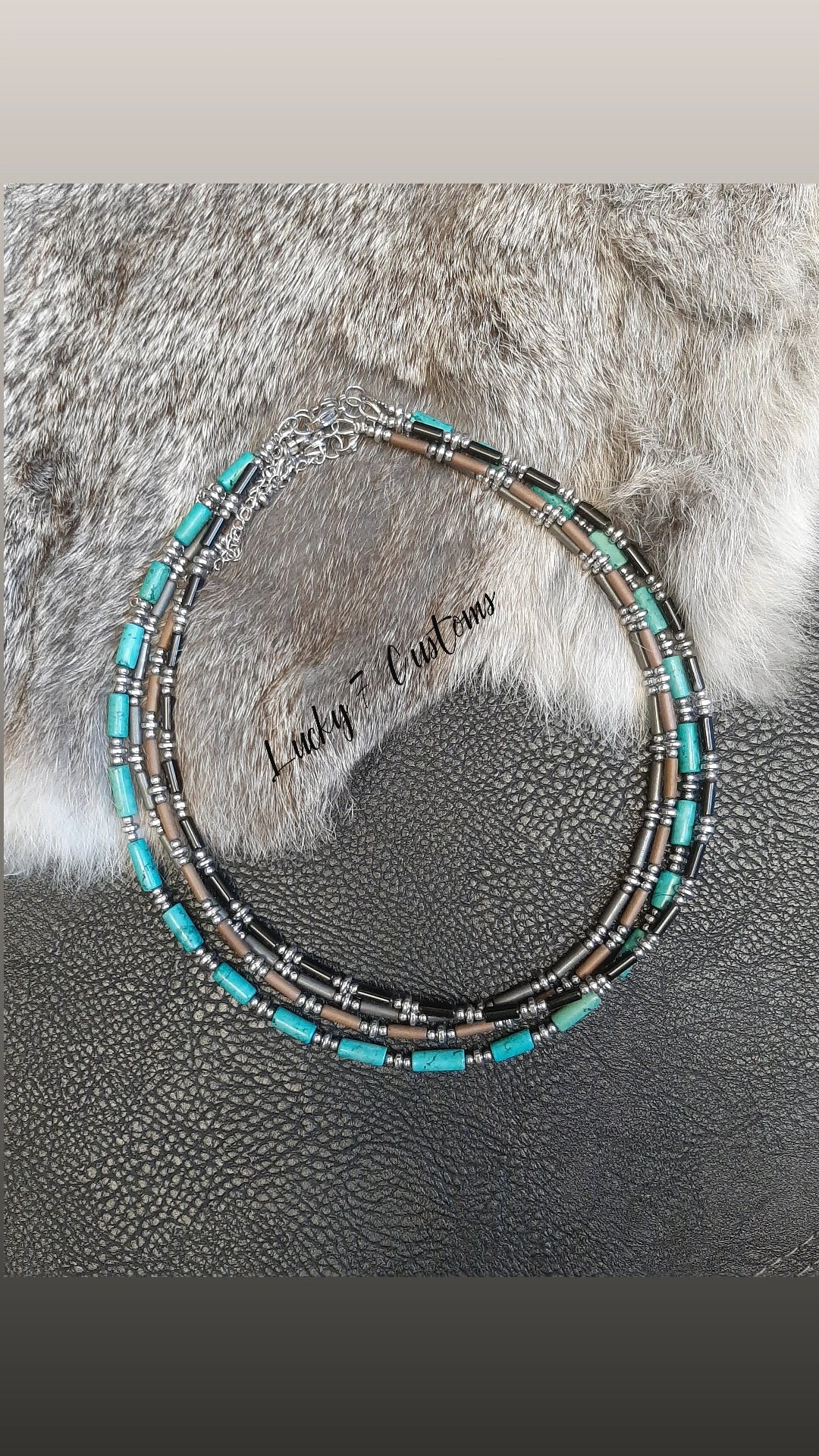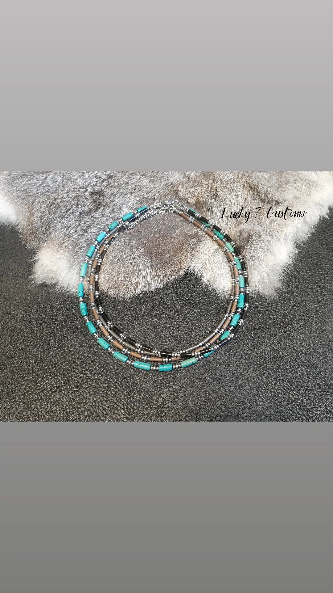 Matte Gray Hematite, Copper Hematite, Black Onyx, Teal Dyed Stone, Silver Hematite & Stainless Steel Hardware