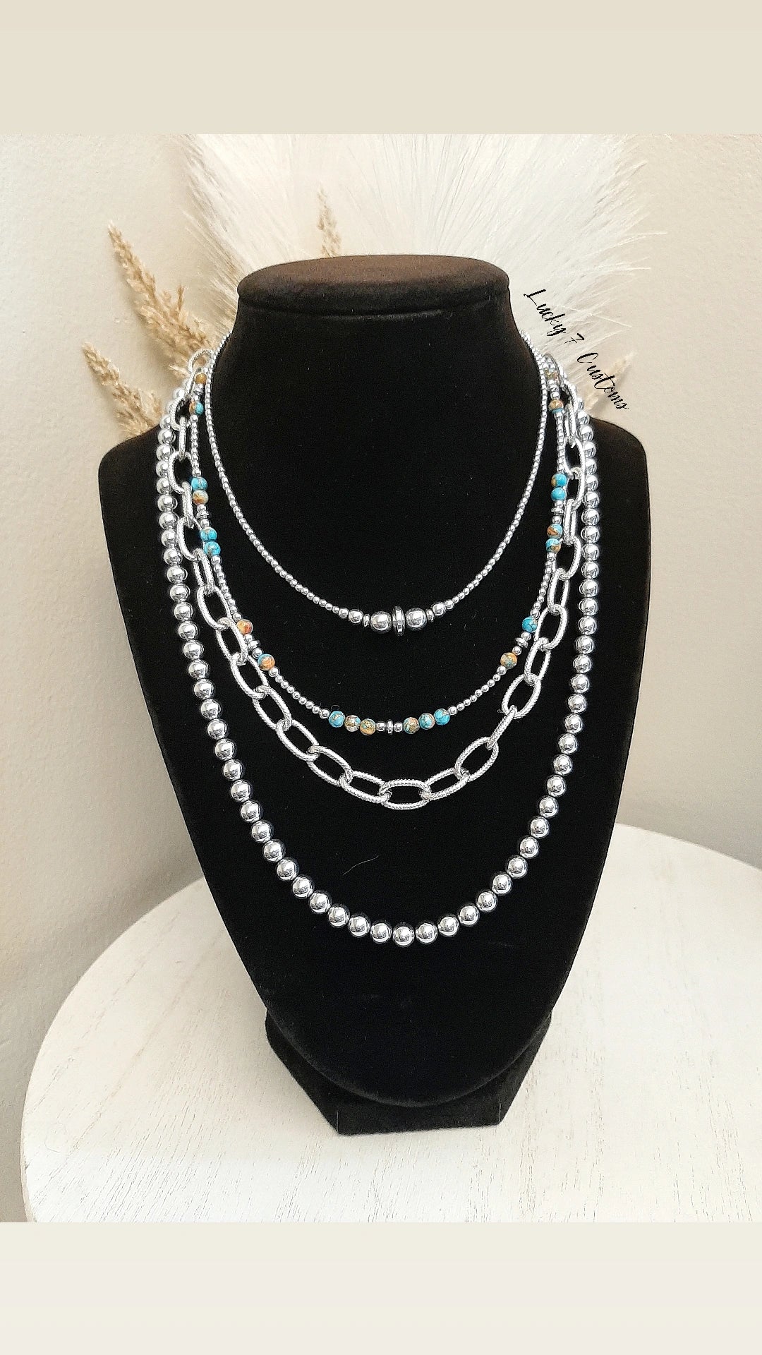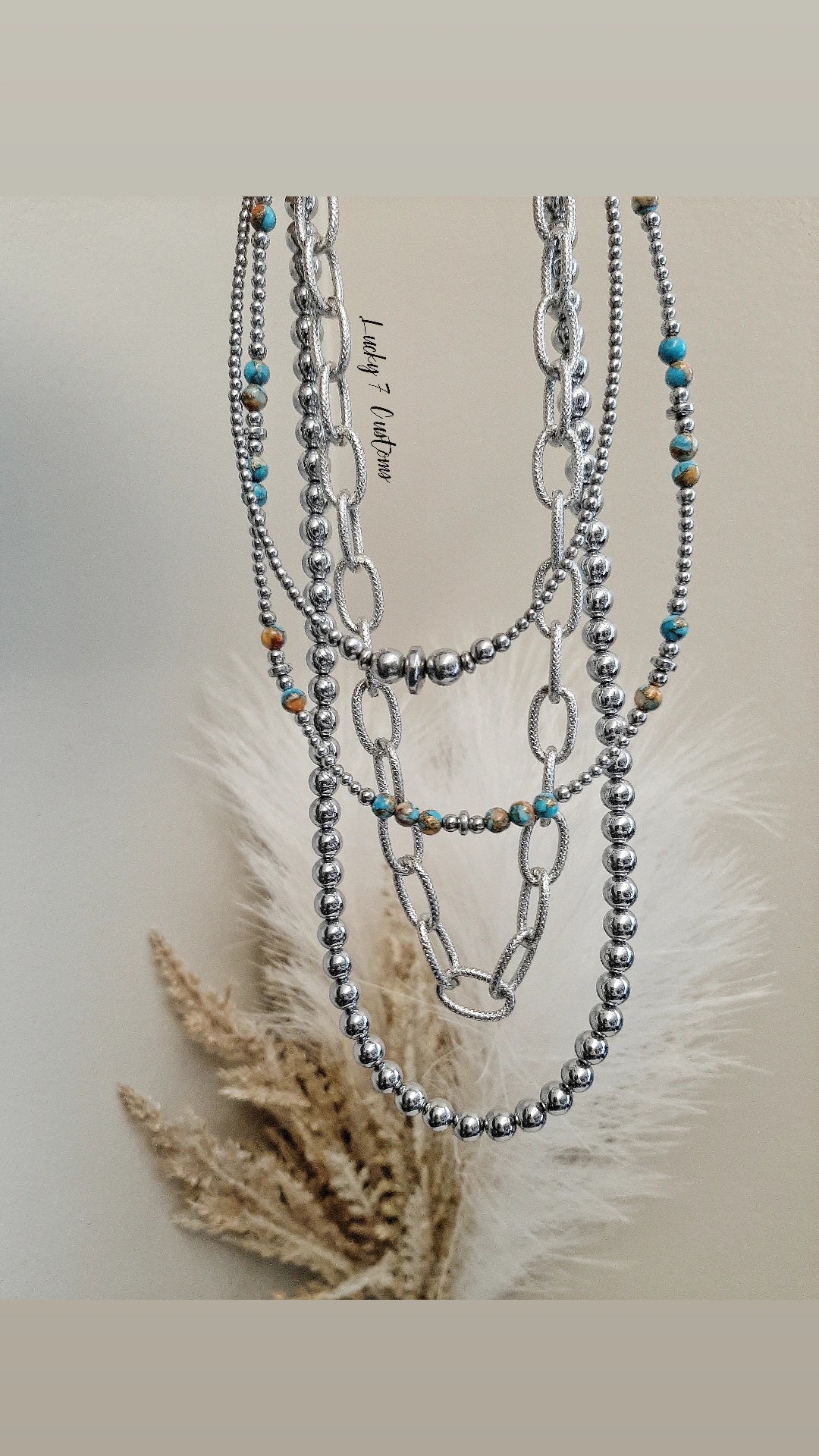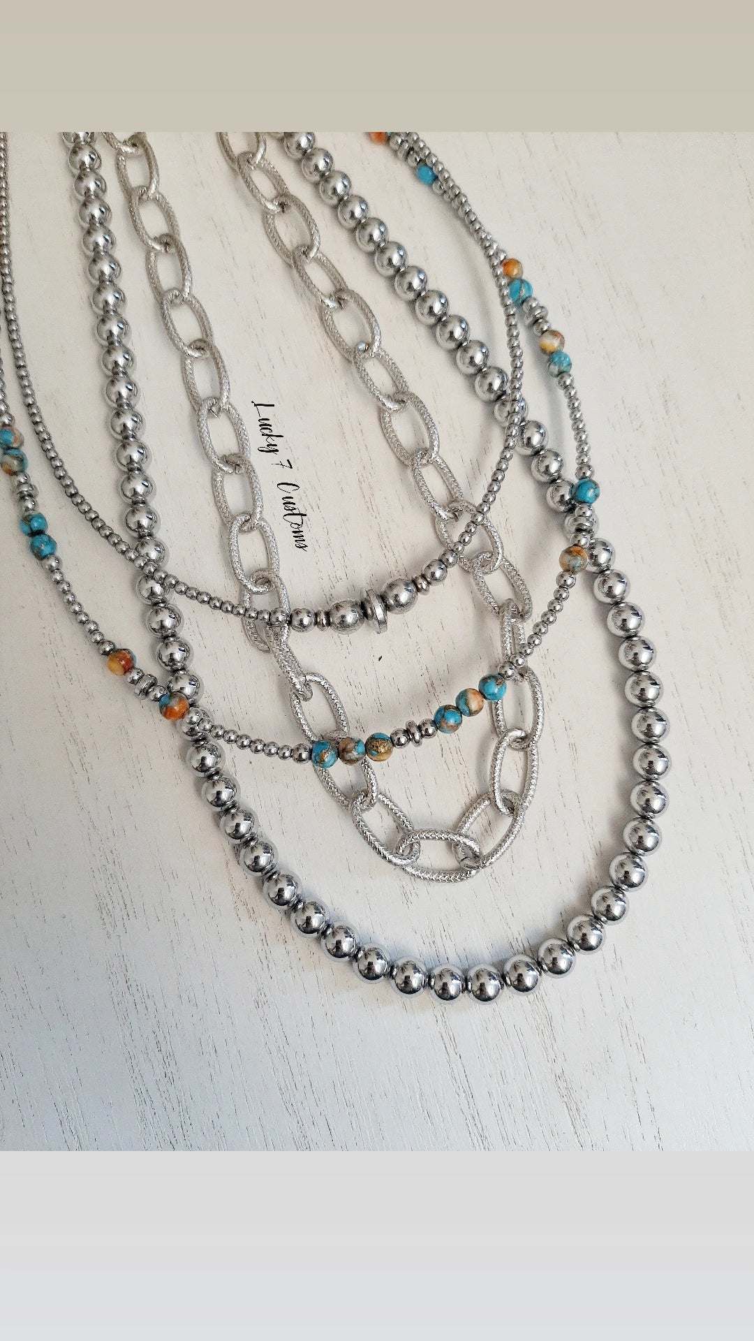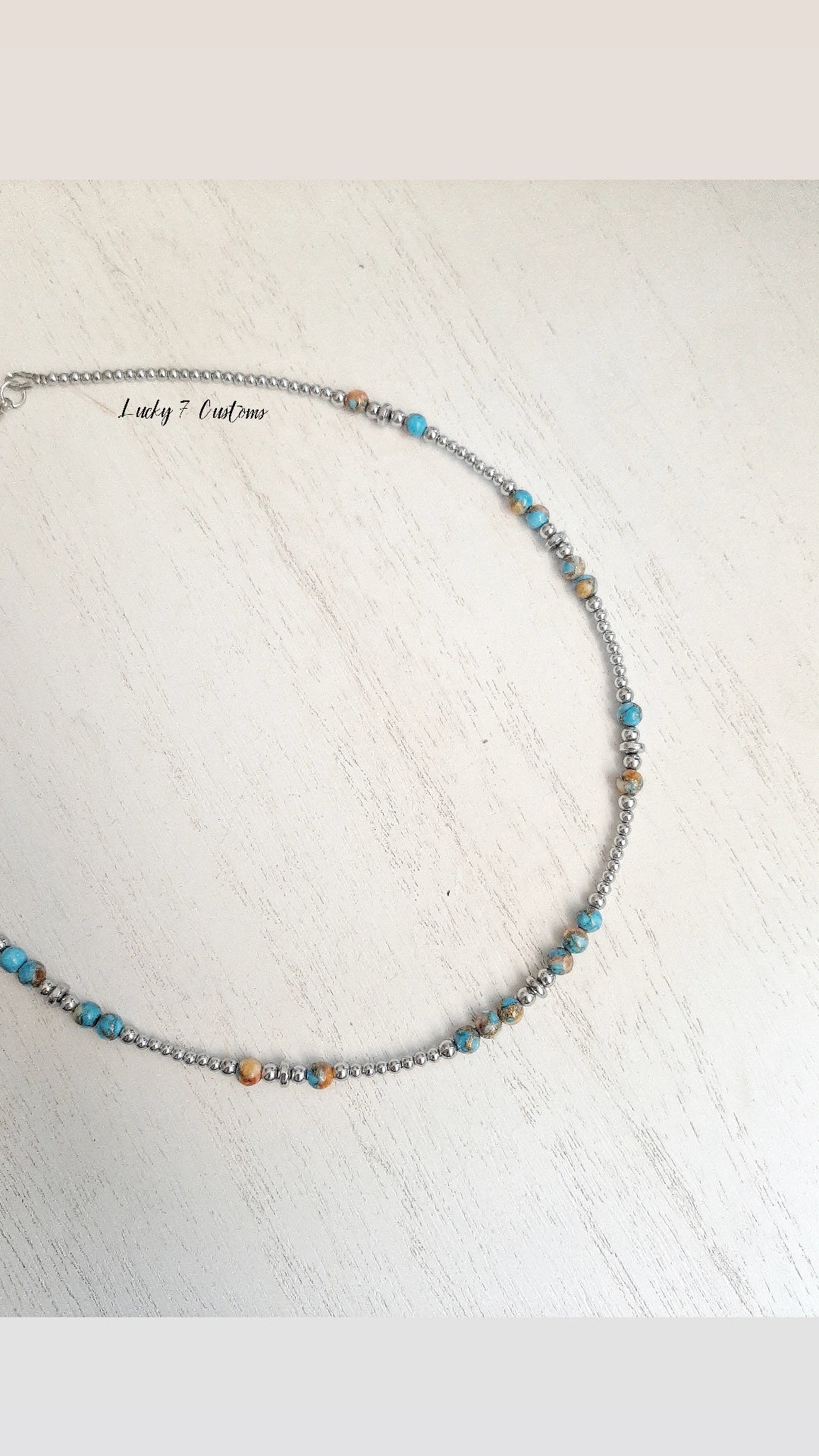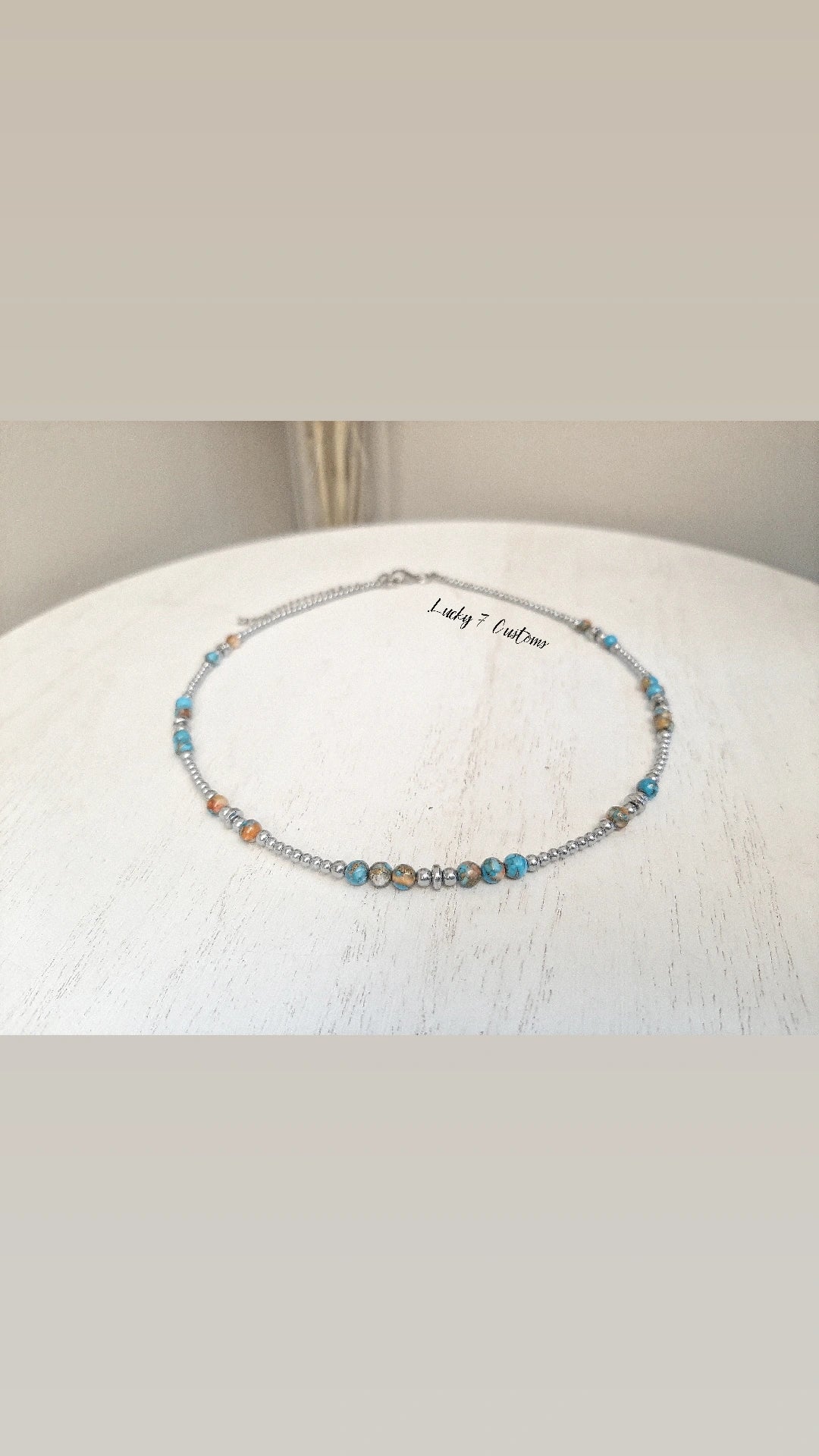 Spiny Oyster/Turquoise Matrix, Silver Hematite & Stainless Steel Chain & Hardware