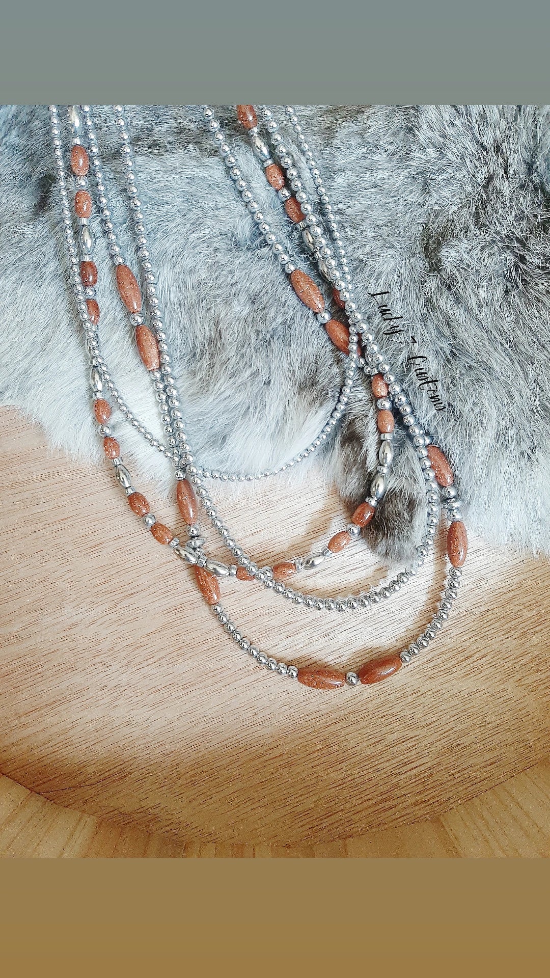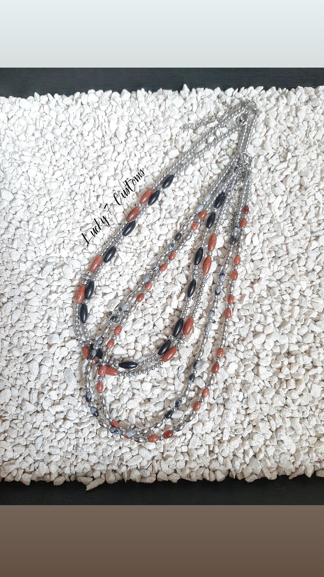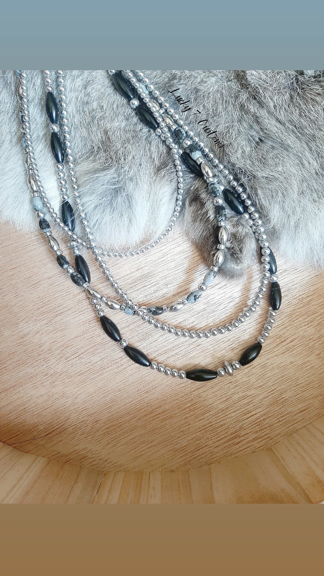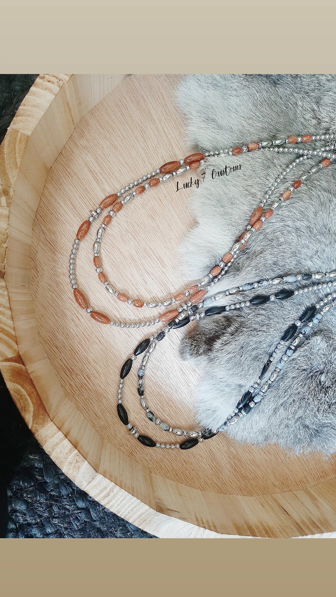 Snowflake Obsidian, Black Onyx, Goldstone, Silver Hematite & Stainless Steel Hardware